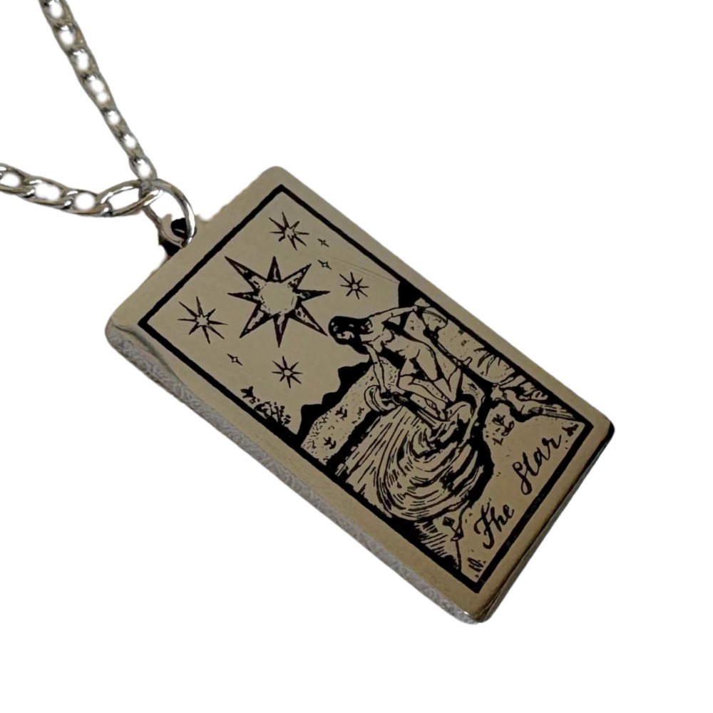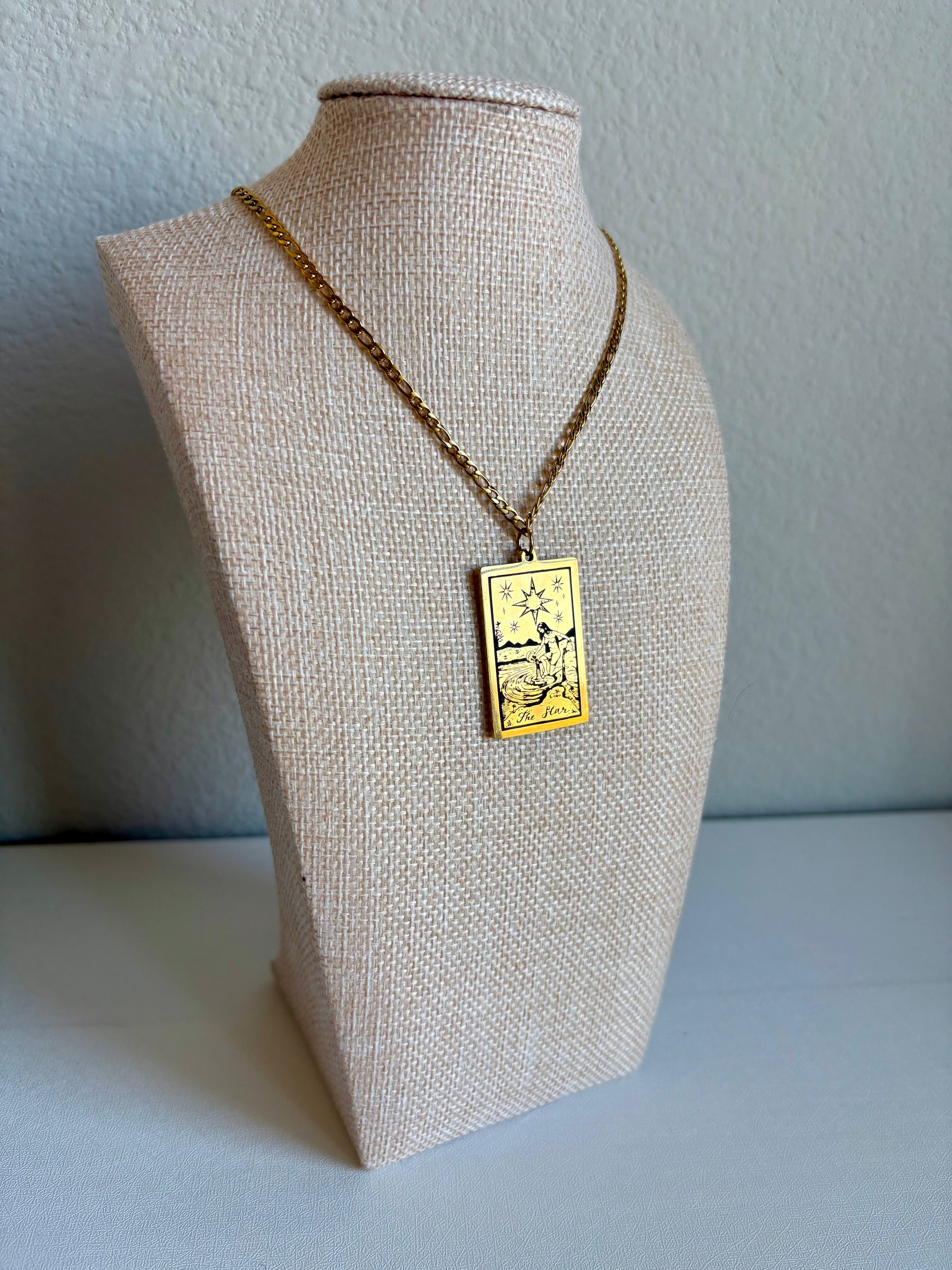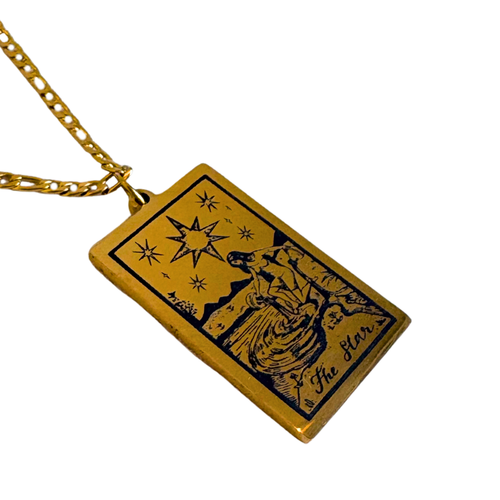 This spiritual necklace features a tarot charm on an 18” figaro chain. Waterproof, tarnish-proof, and hypoallergenic for everyday wear.